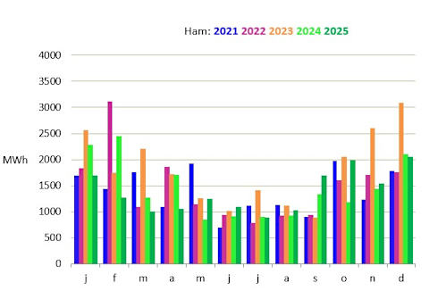 Le parc éolien de Ham se compose de 3 éoliennes avec une capacité de production totale de 10,4 MW. La première éolienne se trouve à côté de l'entreprise Getax, la deuxième derrière le parc de recyclage et la troisième sur le site de Fingo.