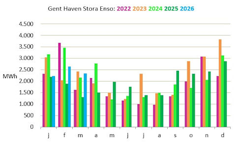 Le parc éolien de Haven Gent Stora Enso, situé le long du Wondelgemkaai sur le site de Stora Enso, est constitué de trois éoliennes de 3,2 MW chacune.