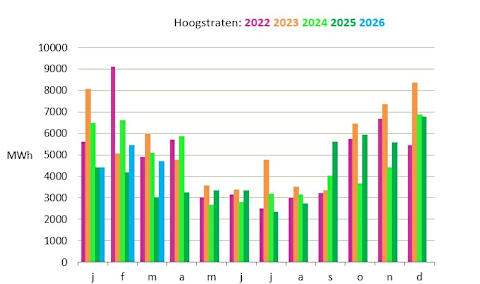 Dans la période janvier-mars 2026 la production s’élevait à 14546 MWh (= la consommation moyenne de 16624 familles en trois mois).