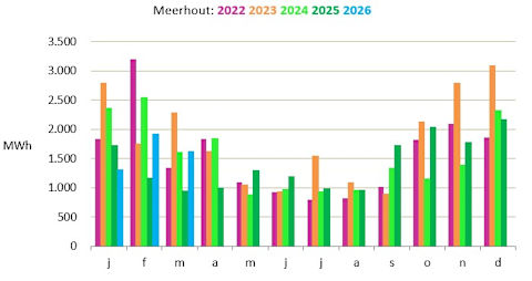Le parc éolien de Meerhout, situé le long du canal Albert, est constitué de trois éoliennes de 3,4 MW chacune.