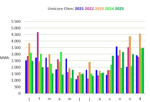 Le parc éolien de Olen, situé au sud du canal Bocholt-Herentals sur le site d’Umicore et Aurubis, est constitué de quatre éoliennes de 3,45 MW chacune.