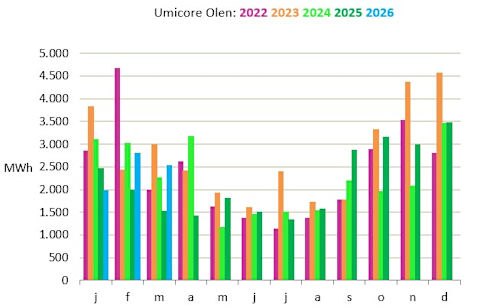 Le parc éolien de Olen, situé au sud du canal Bocholt-Herentals sur le site d’Umicore et Aurubis, est constitué de quatre éoliennes de 3,45 MW chacune.