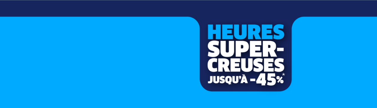 Nouveau : heures SUPER-CREUSES 45 % moins chères*