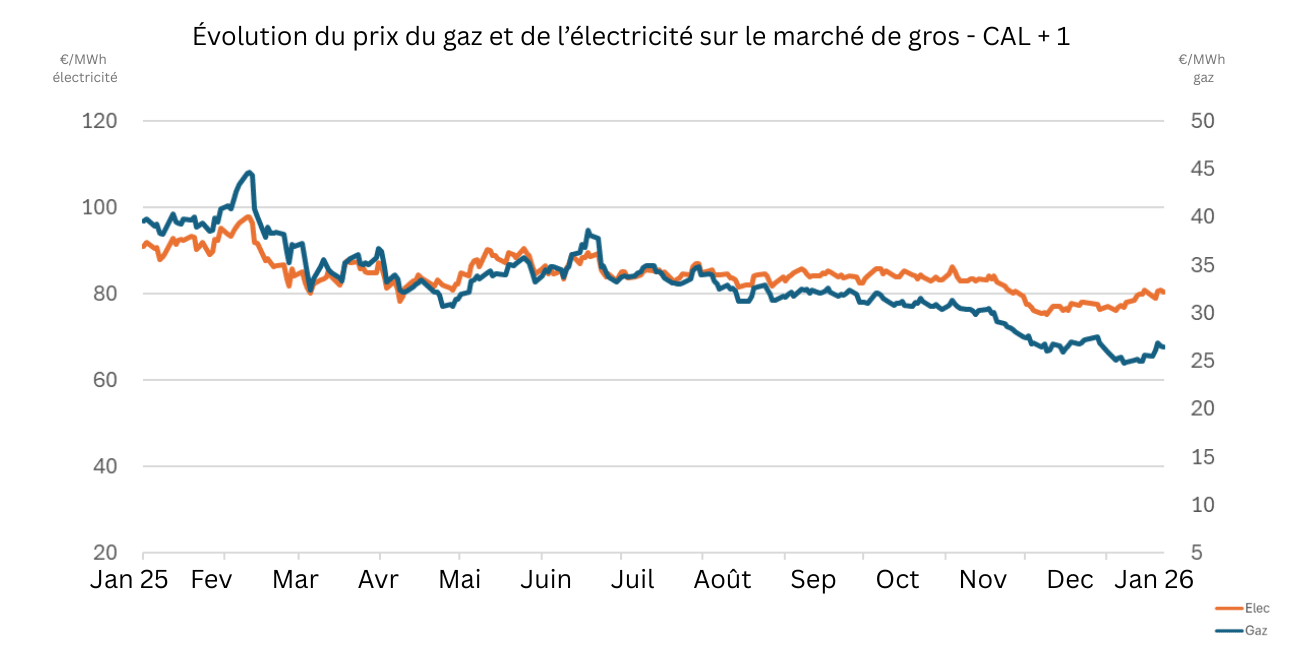 Bonne nouvelle : même si une légère hausse des prix est observée en cette fin de mois – liée à une demande saisonnière plus élevée et à des stocks momentanément plus faibles – les prix de l’électricité et du gaz restent inférieurs à ceux de 2025. C’est donc le moment idéal pour vérifier si votre contrat est toujours le plus compétitif, tant que les tarifs restent attractifs.