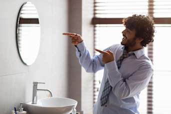 Je poetst elke ochtend je tanden? Dan is dat het ideale moment om naar jezelf te glimlachen in de spiegel. Ook al voelt dat een beetje nep of zelfs belachelijk. Vooruit, haal je breedste glimlach voor de dag, alsof je op straat je beste vriend tegenkomt, en blijf minstens 30 seconden glimlachen. Doe maar, er is toch niemand die je ziet!