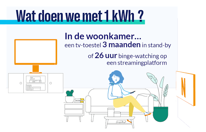 Een eerste voorbeeld: hoe lang kan je tv kijken voor 1 kWh? In sluimerstand … 3 maanden! Maar als je Netflix of Disney+ kijkt, nauwelijks 26 uur.