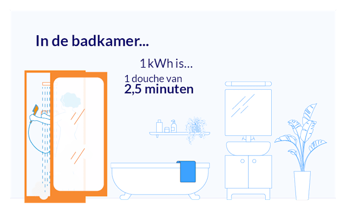 In de badkamer verbruik je meer dan water: die lekker warme douche is vaak alleen maar mogelijk dankzij je elektrische boiler. Wil je maar 1 kWh verbruiken? Dan heb je recht op een douche van … 2 minuten en 30 seconden. Dus maar de helft van de aanbevolen douchetijd.