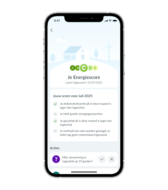Gelukkig biedt de Smart App van ENGIE je houvast. De vragen die de app je elke maand stelt, helpen je om je Energiescore vrijwel moeiteloos te verbeteren. Je ontvangt namelijk handige tips die je meteen kan toepassen om meetbare resultaten te boeken en je energieverbruik te optimaliseren.