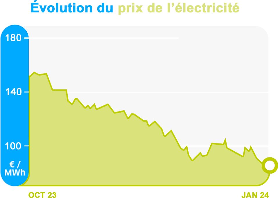 *Comparaison des prix de l'électricité sur les marchés de gros faite entre le 20 octobre 2023 et le 10 janvier 2024. Le prix du gaz suit la même tendance.