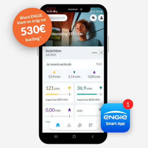 Het aanbod is geldig tot en met 28/02/2026 bij het afsluiten van een energiecontract Flow of Easy vast op de website van ENGIE voor een nieuwe particuliere klant. Deze kortingen zijn geldig gedurende het eerste jaar van het contract en zullen tijdens dit jaar pro rata van uw verbruik worden afgetrokken van uw volgende afrekeningen. Promotie niet geldig in het Brussels Hoofdstedelijk Gewest en is niet cumuleerbaar met andere aanbiedingen. Je jaarverbruik van elektriciteit en/of aardgas moet minder dan 100 MWh zijn voor het geheel van je toegangspunten op het distributienet, berekend op basis van het geschat jaarlijks verbruik (EAV) zoals bepaald door de netbeheerder. Meer info over de prijsformules van het contract Flow Variabel of Easy vast vind je terug op https://www.engie.be/nl/energie/elektriciteit-gas/prijzen-voorwaarden.